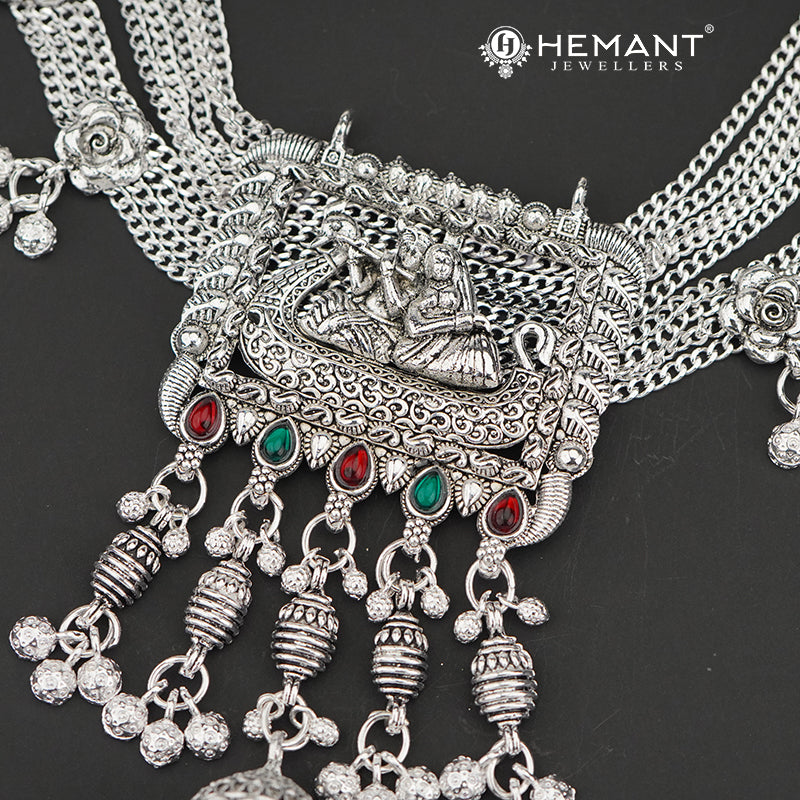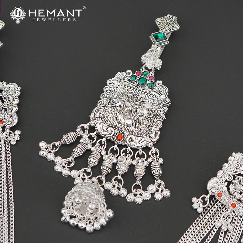 Traditional Oxidized Silver-Tone Radha Krishna Motif Mekhala with Matching Juda – Bridal Waist Ornament – 4191