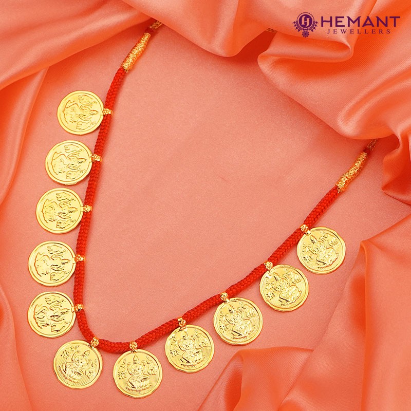 Traditional Maharashtrian Kolhapuri Micro Gold Plated Putali Har 11 Coin Red Small (with earrings)
