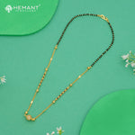 A lightweight mangalsutra featuring golden chain links with black bead accents and a sparkling central bead pendant.
