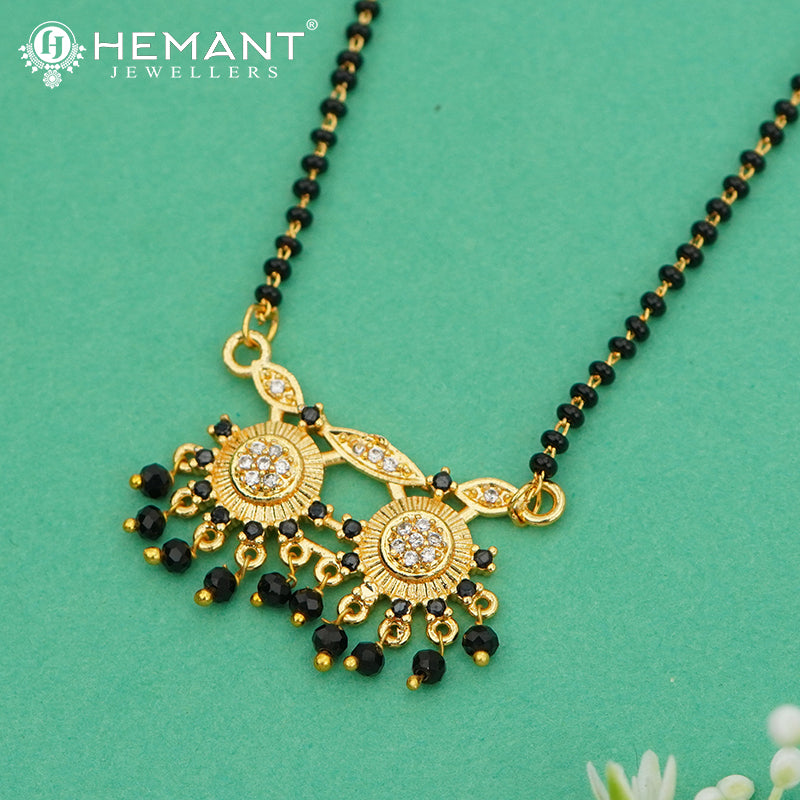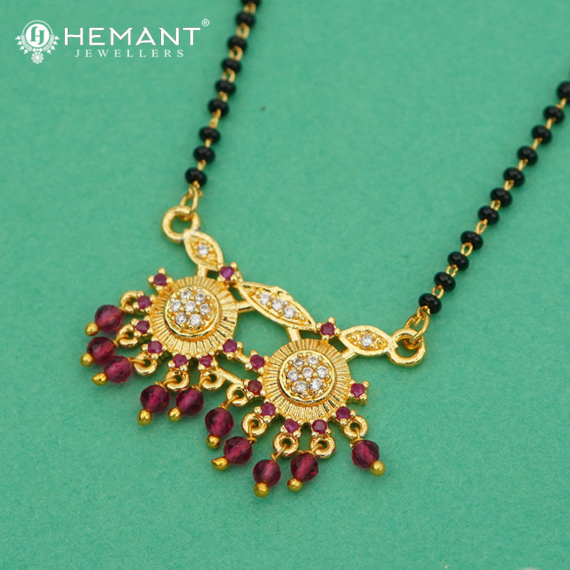 Unit price perElegant mangalsutra featuring a sunburst floral pendant with ruby-green CZ stones and sparkling accents. ЁЯМ╕тЬи