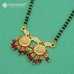 Gold-Plated Double Round Pendant 18" Mangalsutra with Ruby Bead Drops - 4893-95
