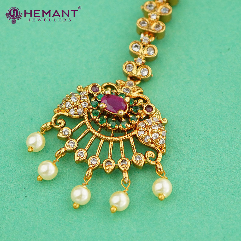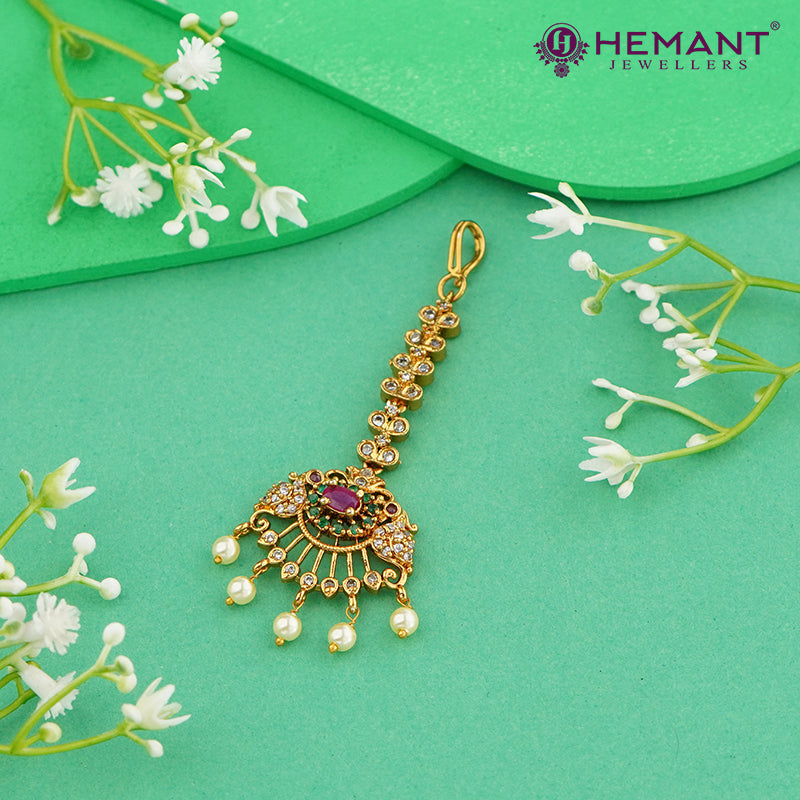 Adorn your forehead with this Antique Tikka, a symbol of grace and beauty. Crafted from a durable copper alloy, it's embellished with synthetic stones and beads. The design exudes a vintage charm, making it a perfect accessory for traditional events. Whether attending a wedding or a festive celebration, this Tikka will enhance your ethnic look with its timeless elegance.