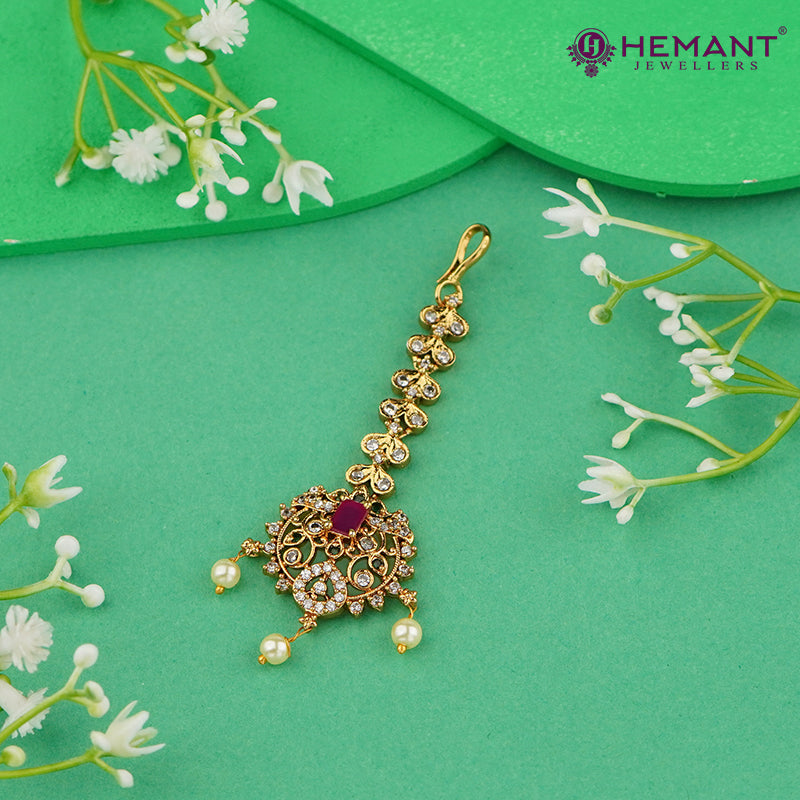 Unit price perAdorn your forehead with this Antique Tikka, a symbol of grace and beauty. Crafted from a durable copper alloy, it's embellished with synthetic stones and beads. The design exudes a vintage charm, making it a perfect accessory for traditional events. Whether attending a wedding or a festive celebration, this Tikka will enhance your ethnic look with its timeless elegance.