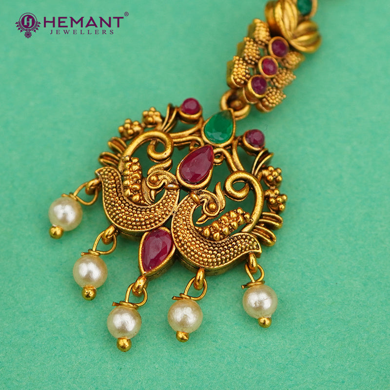 Unit price perAdorn your forehead with this Antique Tikka, a symbol of grace and beauty. Crafted from a durable copper alloy, it's embellished with synthetic stones and beads. The design exudes a vintage charm, making it a perfect accessory for traditional events. Whether attending a wedding or a festive celebration, this Tikka will enhance your ethnic look with its timeless elegance.
