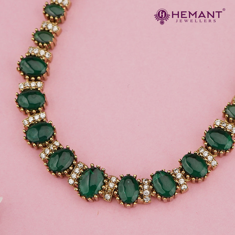 Unit price perA modern oval-stone necklace set adorned with shimmering CZ crystals, perfect for festive glam.