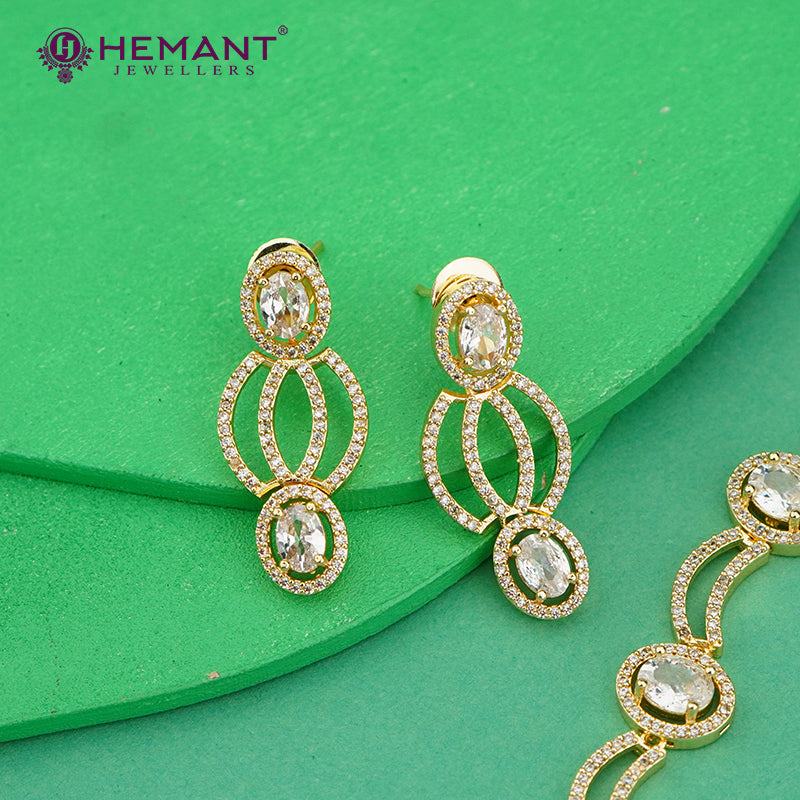 Elegant White Stone Linked Oval Necklace Set with Earrings – 4603