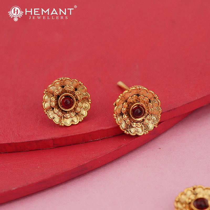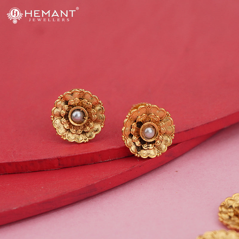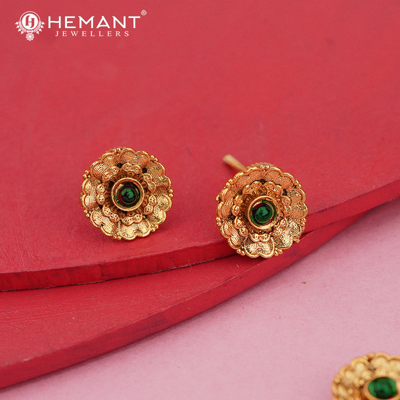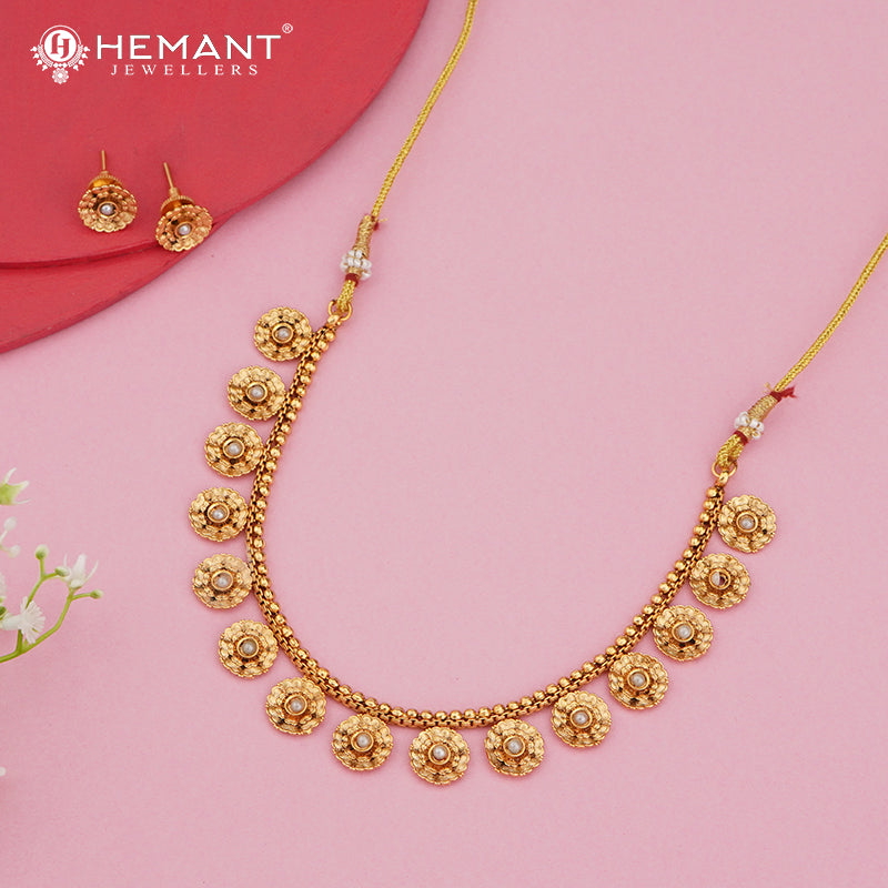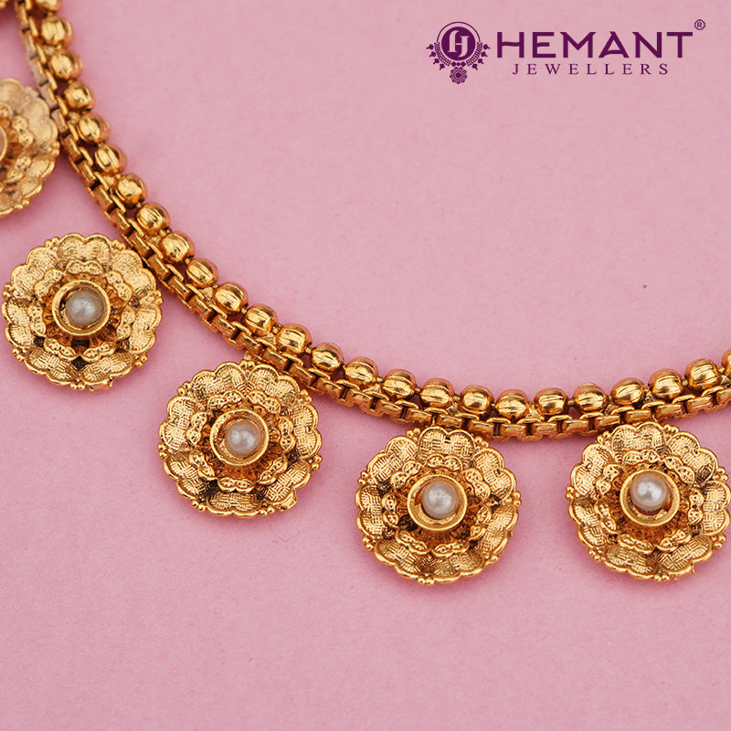 The necklace comes with matching floral stud earrings to complete the set. Ideal for styling with cotton sarees, silk blouses, or semi-traditional wear for pujas or family occasions.