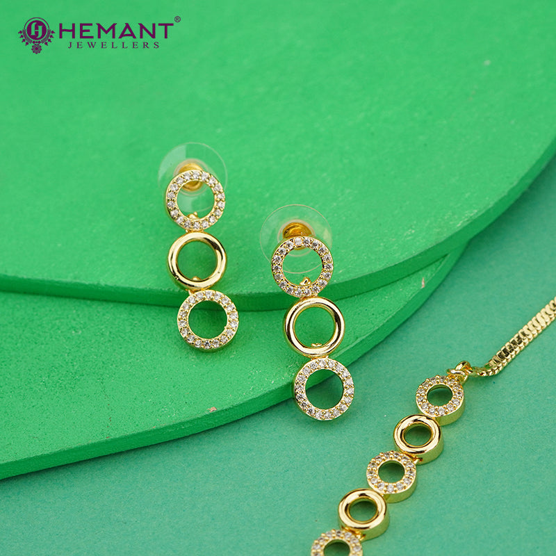 Gold-Finish Interlinked Circle Necklace Set with Zircon Highlights – 4620