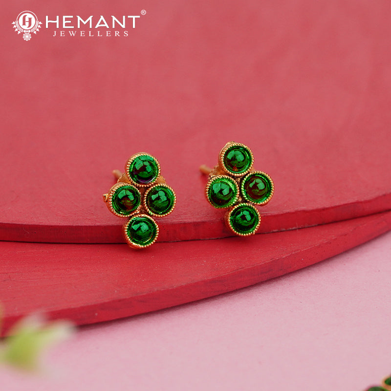 The symmetrical design offers a clean and sophisticated look, ideal for minimalist festive styling or as an accent piece with a colorful traditional outfit. The matching earrings echo the red-green cluster pattern, adding a delicate charm.