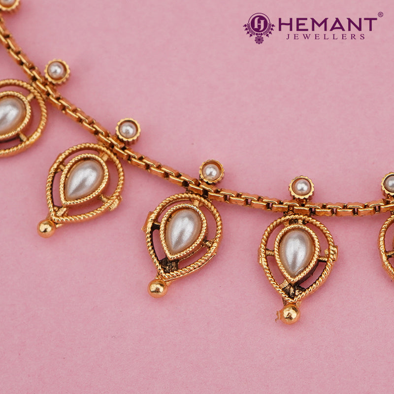 Whether you're attending a puja, family gathering, or a cultural celebration, this set offers the ideal balance of simplicity and sophistication. The intricate stone setting ensures a rich appeal.