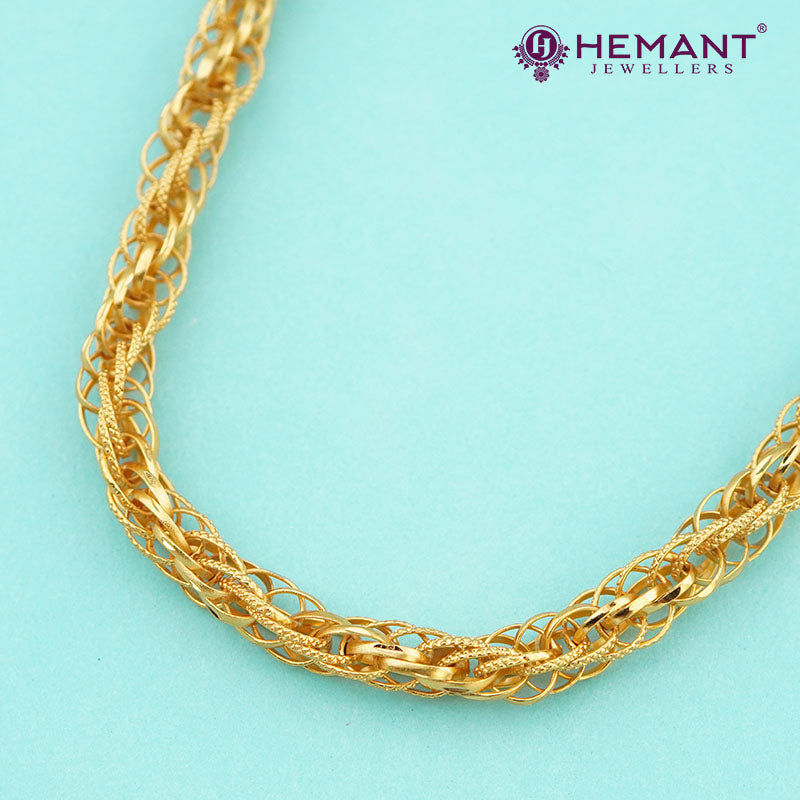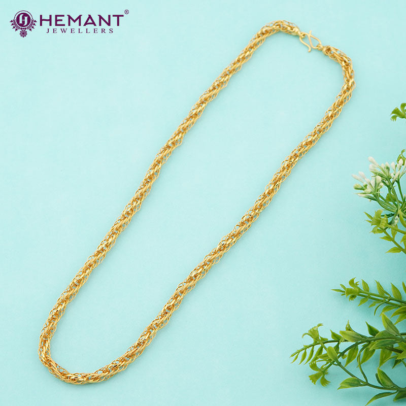 Upgrade your style with this gold-plated rope chain for men from Hemant Jewellers. Designed with a twisted rope pattern, this chain adds a bold yet elegant touch to any outfit. Made with premium micro gold plating, it offers a luxurious look while being lightweight and comfortable. Ideal for both casual and formal occasions, this chain is a must-have accessory for a refined and stylish appearance.
