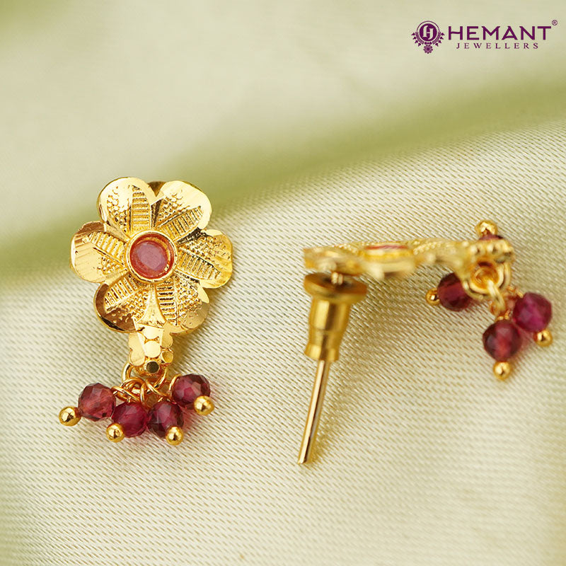 Traditional Floral Gold Plated Necklace Set with Earrings