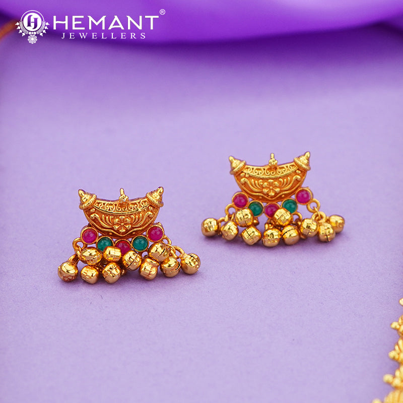 Traditional Maharashtrian Kolhapuri Antique Finish Saaj Geru 5 Panadi 29 Pan Boat (with earrings)