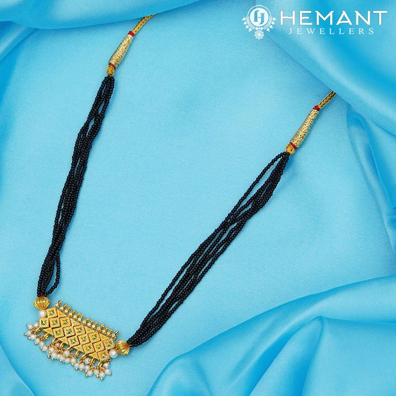 Traditional Maharashtrian Kolhapuri Mangalsutra Plain 9 X+Square Peti Moti