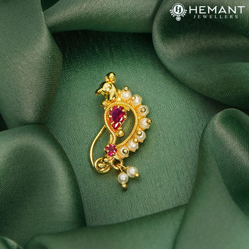Traditional Maharashtrian Kolhapuri Micro Gold Plated Nath Q (Nose Pin)
