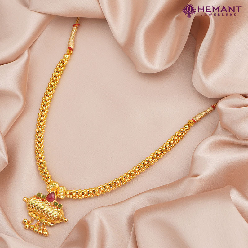 Handcrafted Kolhapuri Thushi made with micro gold plating at Hemant Jewellers. Shop online for unique, traditional jewelry pieces and add a touch of elegance to your look.