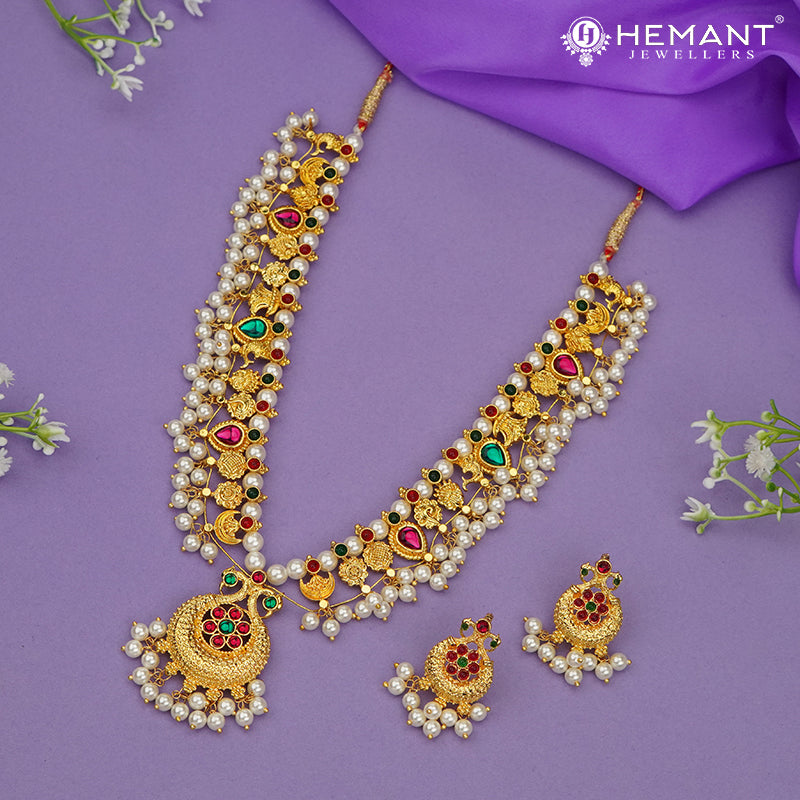 Unit price perThe Kolhapuri Saaj is a stunning necklace, a unique piece of jewelry from Maharashtra, India. Known for its intricate designs and rich symbolism, it's a beautiful way to add a touch of tradition to your look.