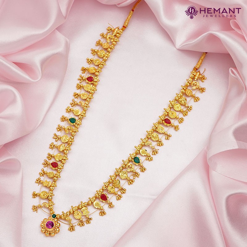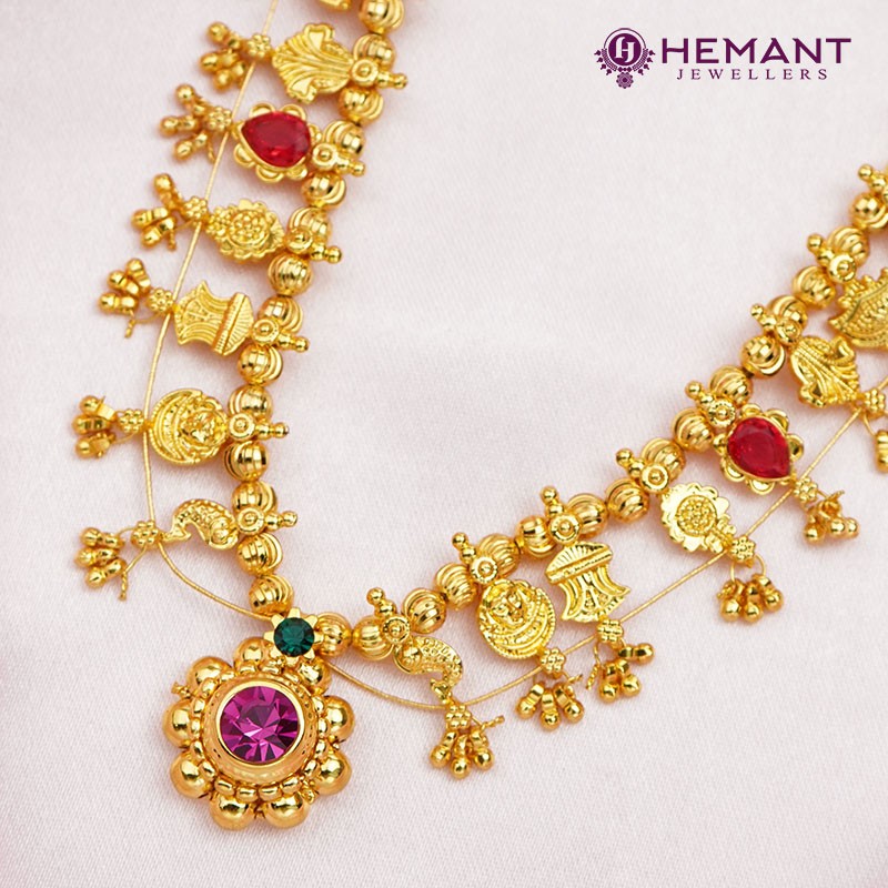 The Kolhapuri Saaj is a stunning necklace, a unique piece of jewelry from Maharashtra, India. Known for its intricate designs and rich symbolism, it's a beautiful way to add a touch of tradition to your look.