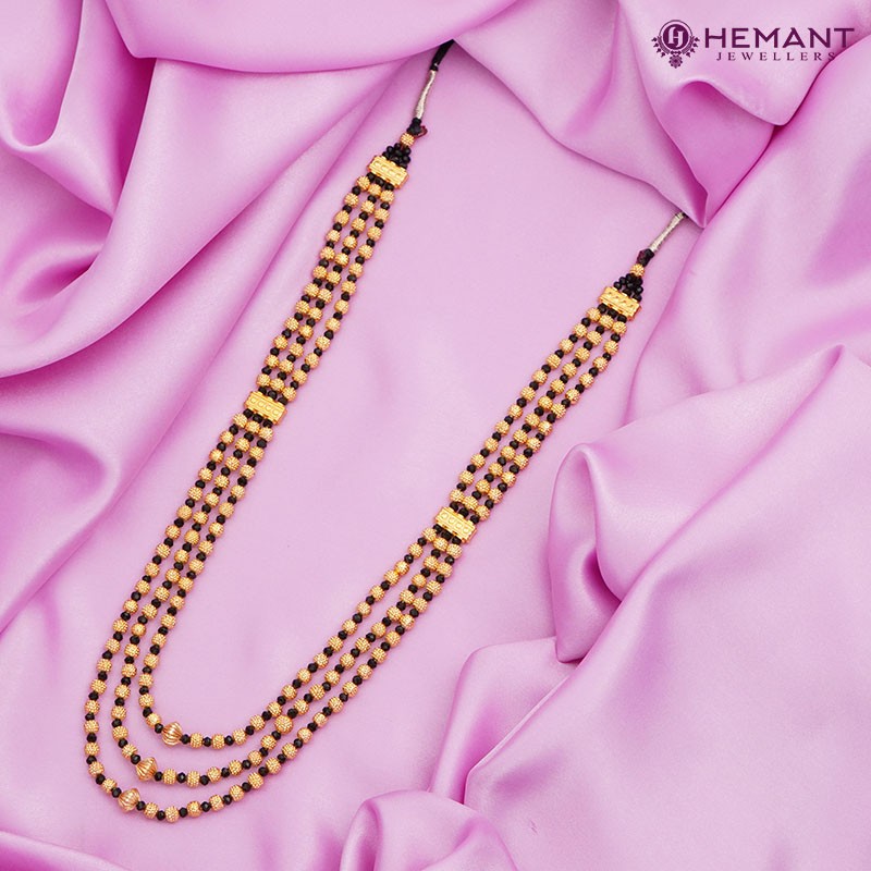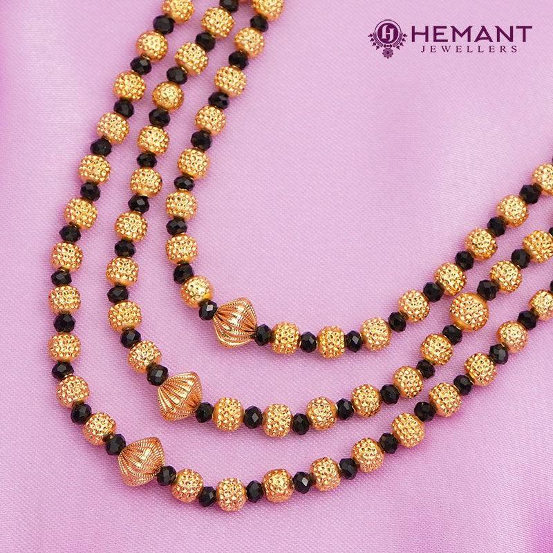 Traditional Maharashtrian Kolhapuri Spot Mala Black Color 3 Line - 3652