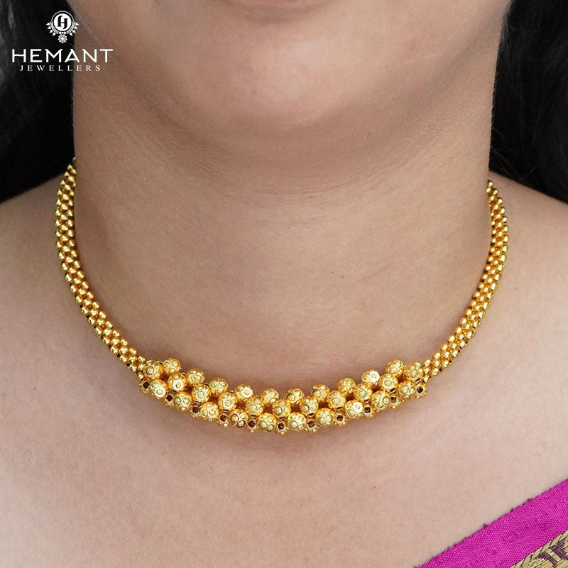 Handcrafted Kolhapuri Thushi made with micro gold plating at Hemant Jewellers. Shop online for unique, traditional jewelry pieces and add a touch of elegance to your look.