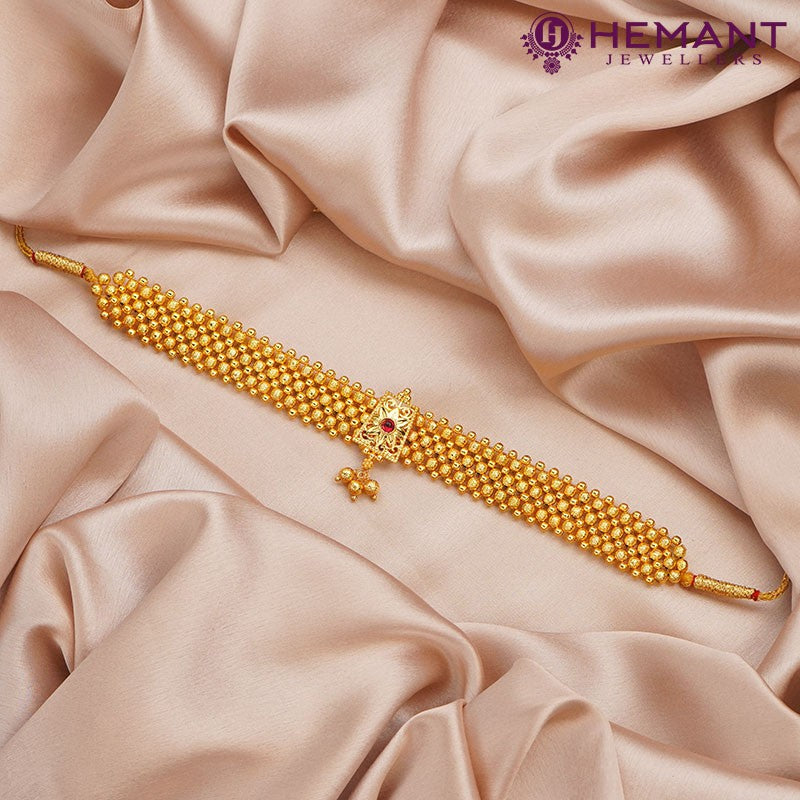 Unit price perHandcrafted Kolhapuri Thushi made with micro gold plating at Hemant Jewellers. Shop online for unique, traditional jewelry pieces and add a touch of elegance to your look.